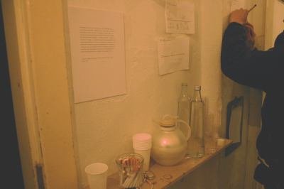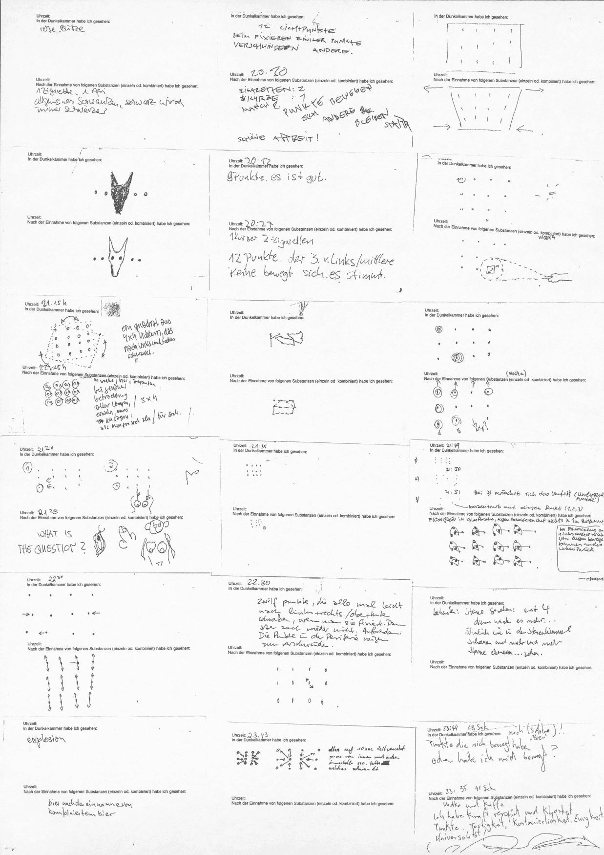 Besucher bekommen einen Stempel auf ihre Hand und treten daraufhin in einen dunklen Raum, der zwei schwache Lichter enthält. Es folgt, was Neuropsychologen "Autokinetismus" nennen: der Betrachter hat Schwierigkeiten, das unbewegliche von dem beweglichen Licht zu unterscheiden. Rhythmische Bewegungen beziehen sich aufeinander als Teil eines Prozesses, der jedoch keine optische Illusion ist. Die Hinterconti-Fassung dieser Arbeit operiert anstatt zwei mit 12 Lichtern. Die Besucher können den autokinetischen Prozess durch die Einnahme von Kaffee, Schnaps oder Zigaretten (zu Verfügung gestellt) bestimmen. Dadurch kann man die Licht-Konstellation mehrmals anders erfahren und programmatisch die falsche Bewegung beschleunigen oder verlangsamen. Eine Tafel erklärt den neuropsychologischen Vorgang. Die Besucher sind eingeladen, ihre Erfahrungen schriftlich zu notieren, um so anderen Besuchern diese zum Vergleich zur Verfügung zu stellen. Frühere Fassungen dieser Arbeit wurden 2000 im Molotow und 2004 im Westwerk gezeigt.